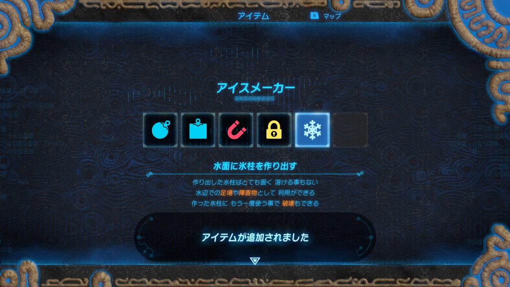 このトゥミ・ンケの祠で手に入る能力は水面に氷柱を作り出す力アイスメーカー。