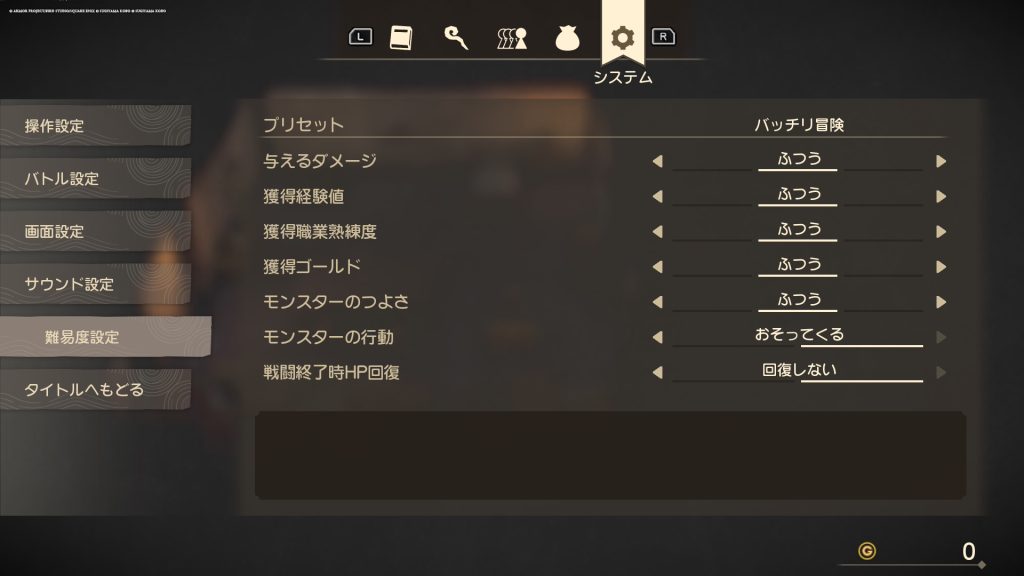 いちばんノーマルな設定が「バッチリ冒険」なので、まずはこれで始めてみてやりながら自分好みにカスタマイズしていくのもいいと思います。