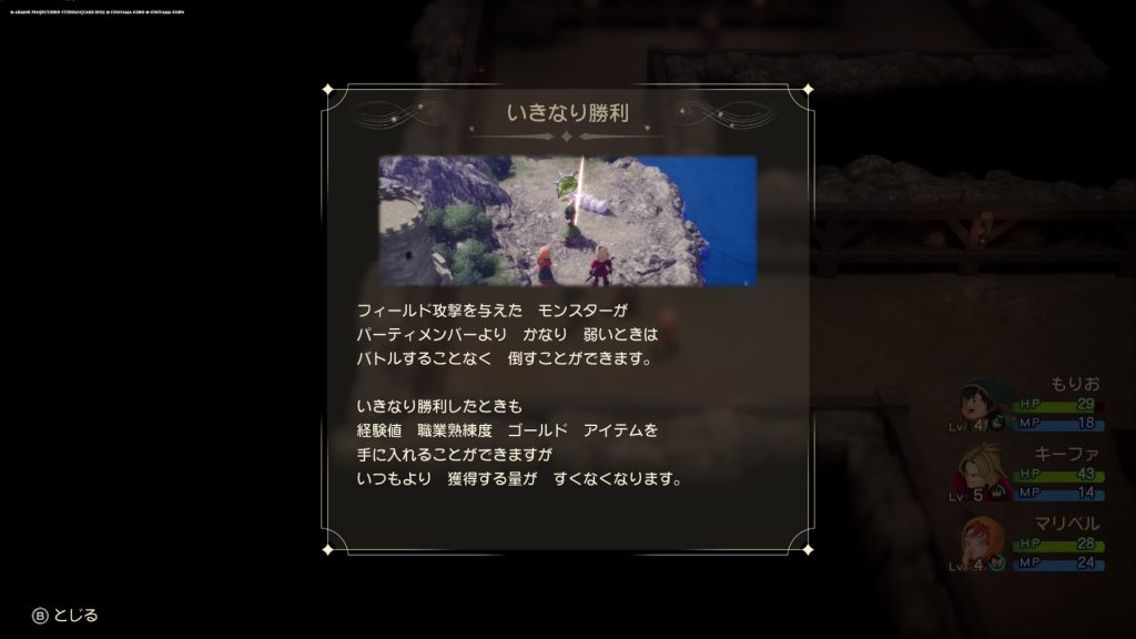 これまでもレベル差が大きい敵モンスターは自分から避けてくれたりしてバトルにならずに済んではいたのですが、バトルしないと全く経験値が入らないためなんかちょっともったいない気持ちになって、僕は無駄にバトルを仕掛けたりしていました。