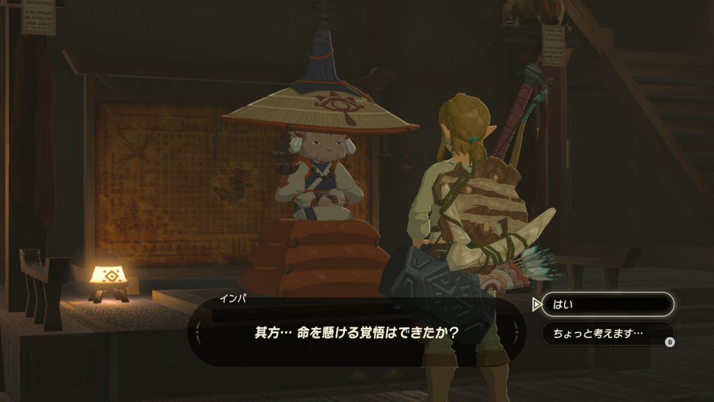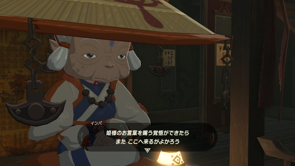 インパ様によると、100年前ゼルダ姫は最後の希望として倒れたリンクを聖なる眠りにつかせ、たった一人で厄災ガノンのもとに向かったと。