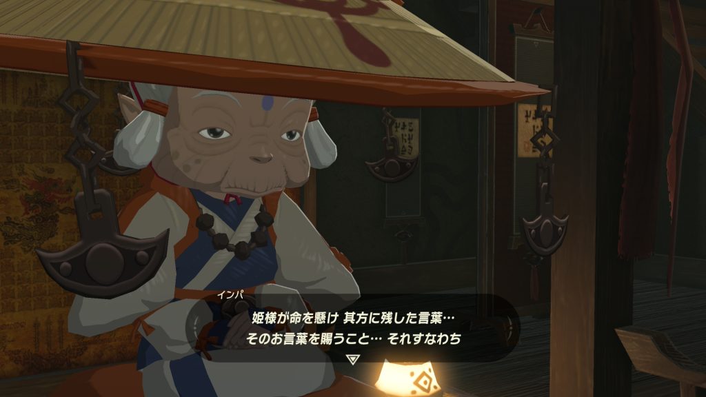 そしてそのときゼルダ姫がリンクに残した言葉を伝えるため、インパ様はリンクの目覚めを待っていたと。