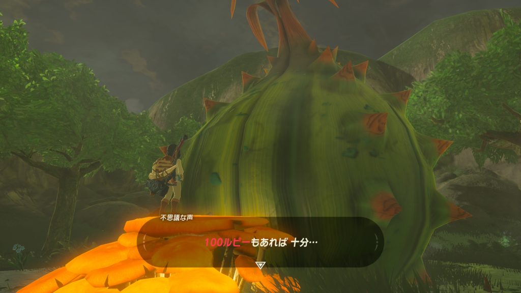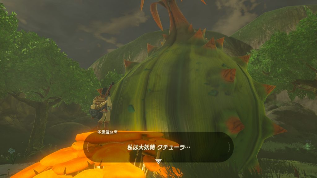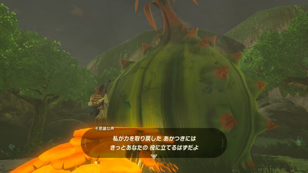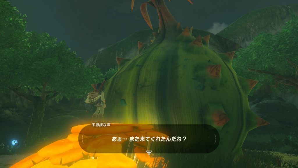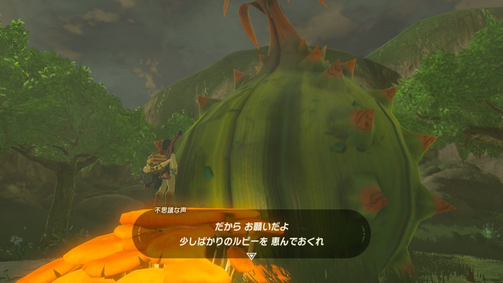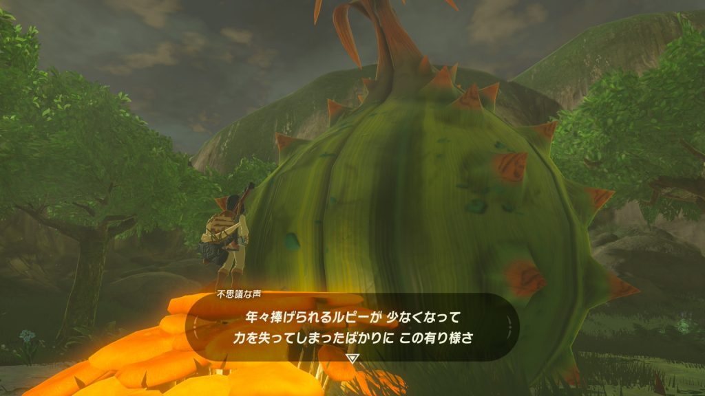 村から丘をのぼって、祠も過ぎてさらに奥へ向かうと、なんだか怪しげなでっかいサボテンが。